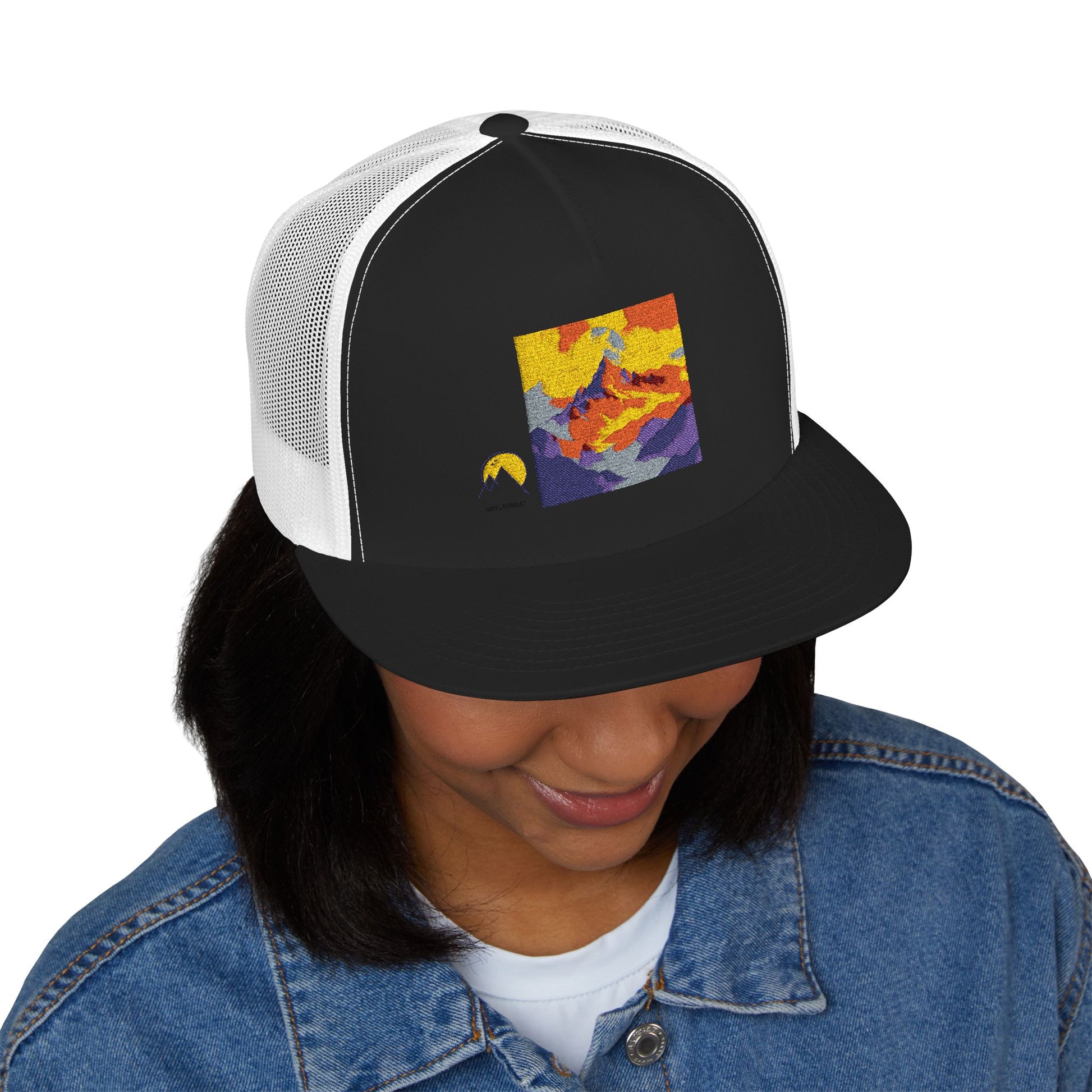 Big Promise: Mesh-back airflow with a sunset badge—built for heat, podium pics, and long drives to the trailhead.