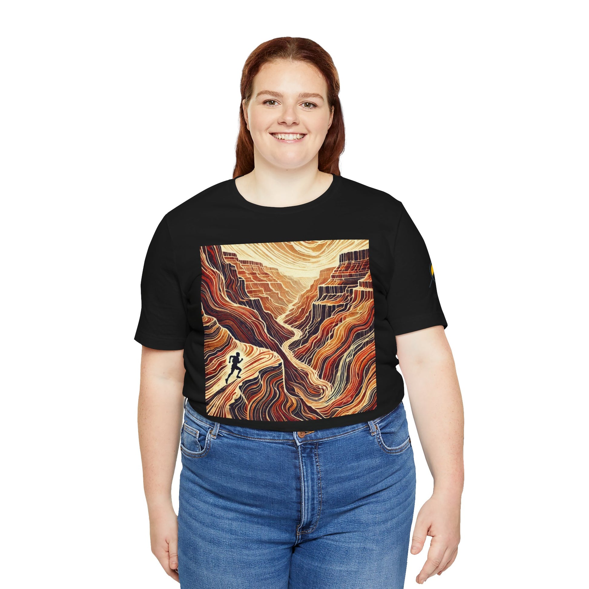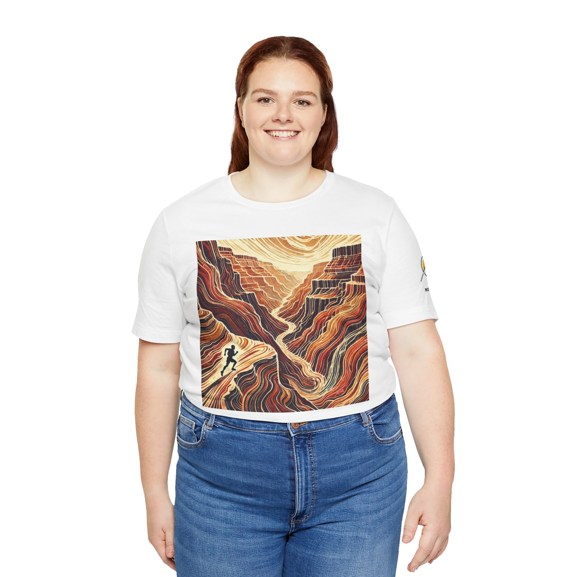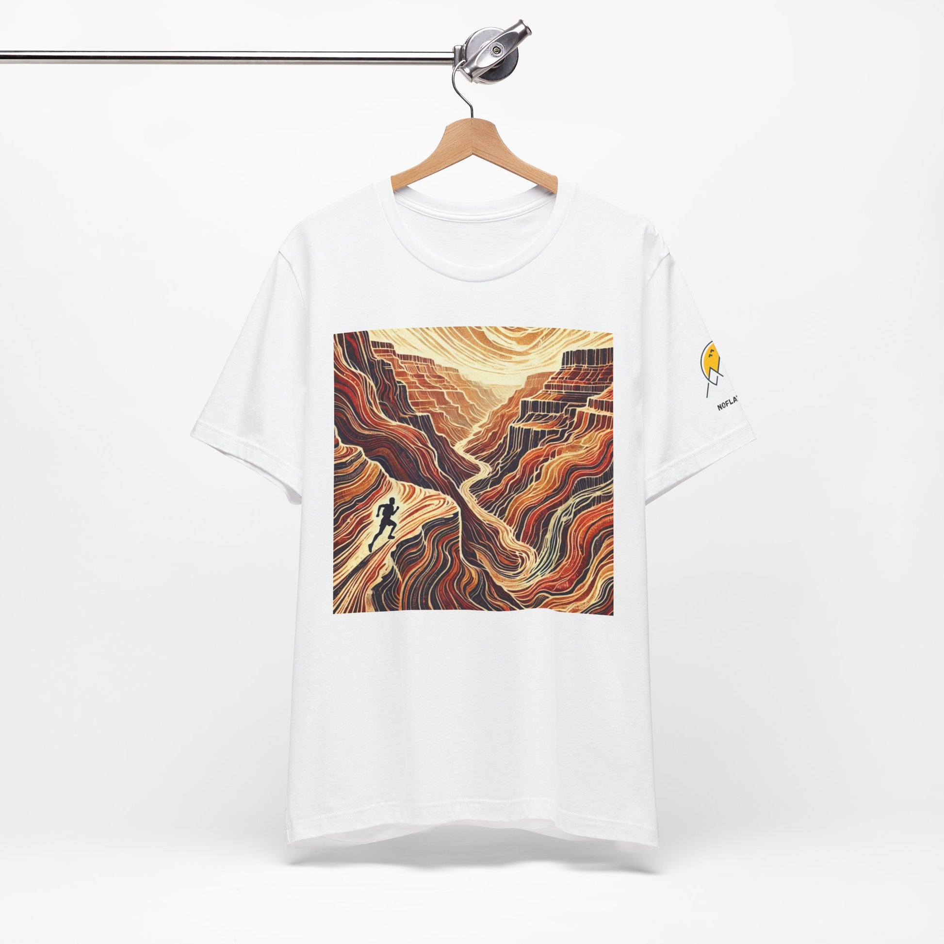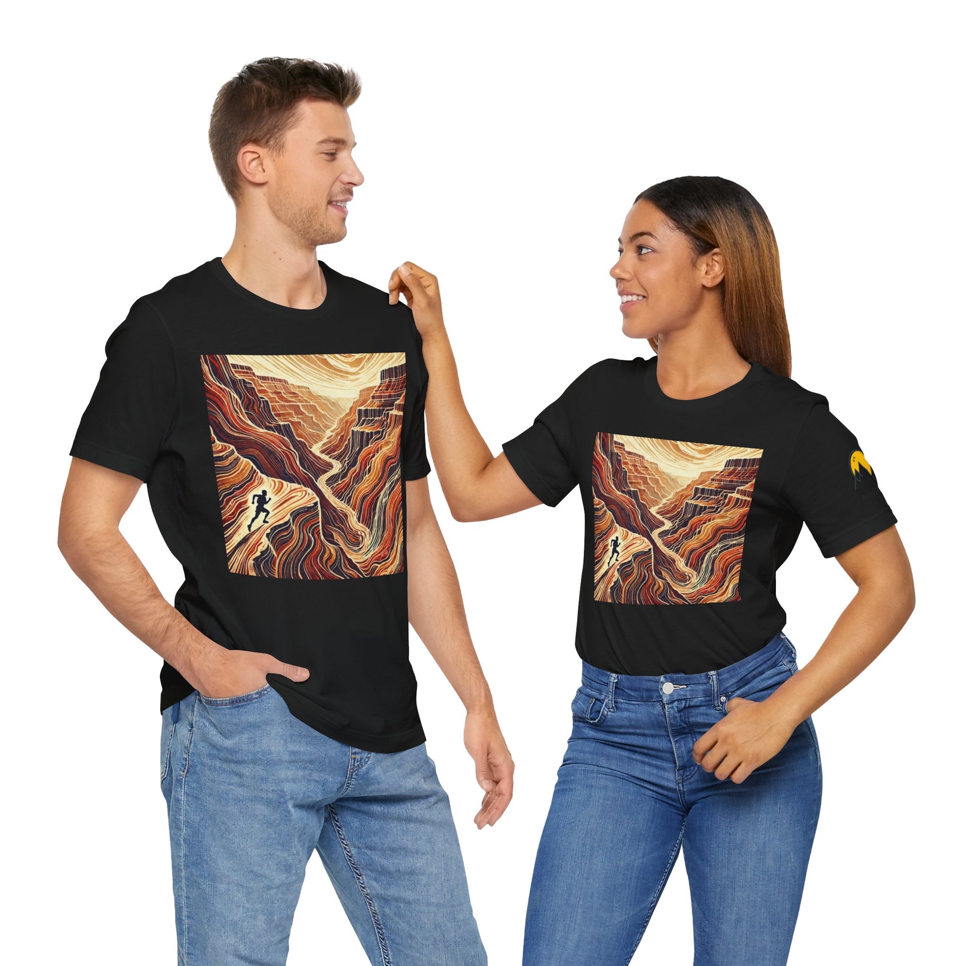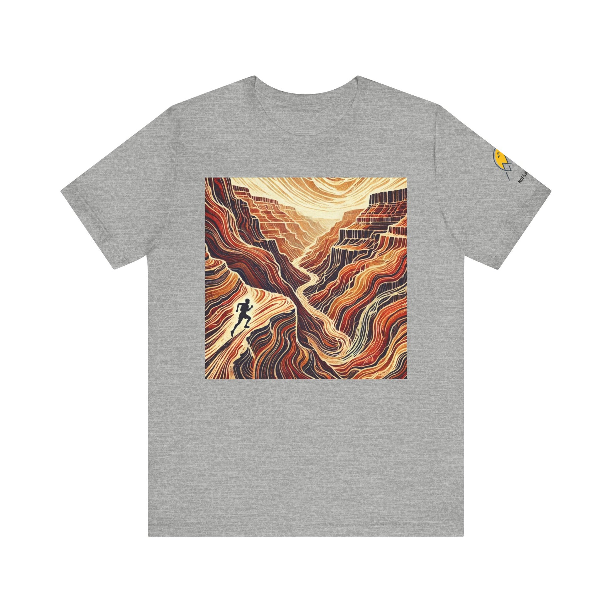 The daily shirt for runners who don’t chase flats. Our “Canyon Flow” print captures the rim-to-rim lines and the grit it takes to cross them. Soft, light, and built for post-run coffee, packet pickup, or a flight to your next race.
