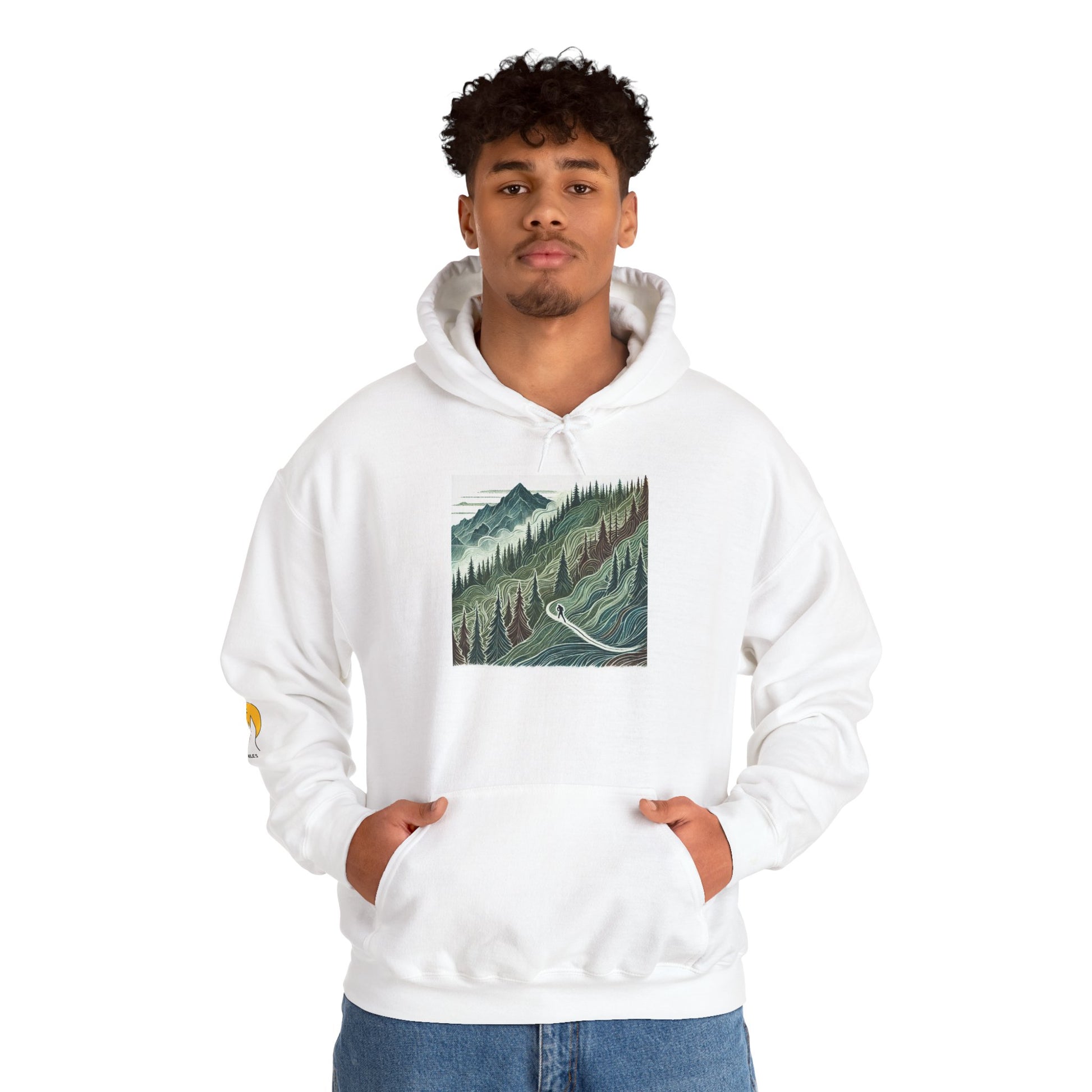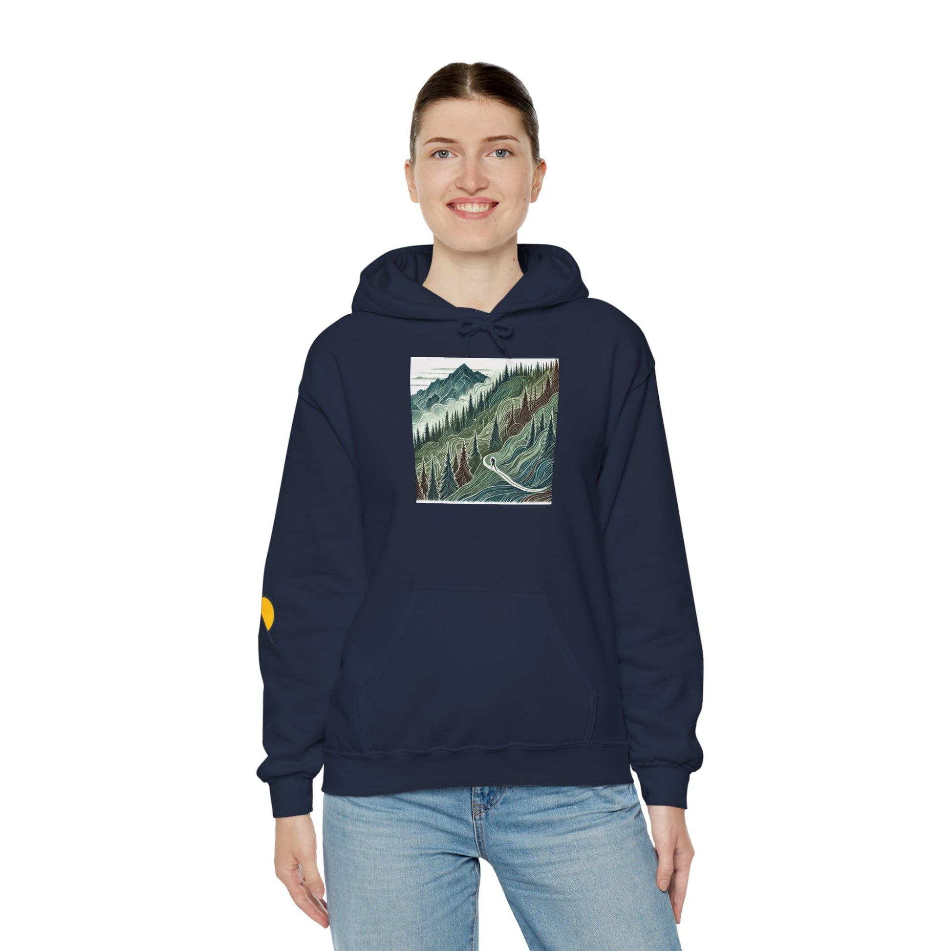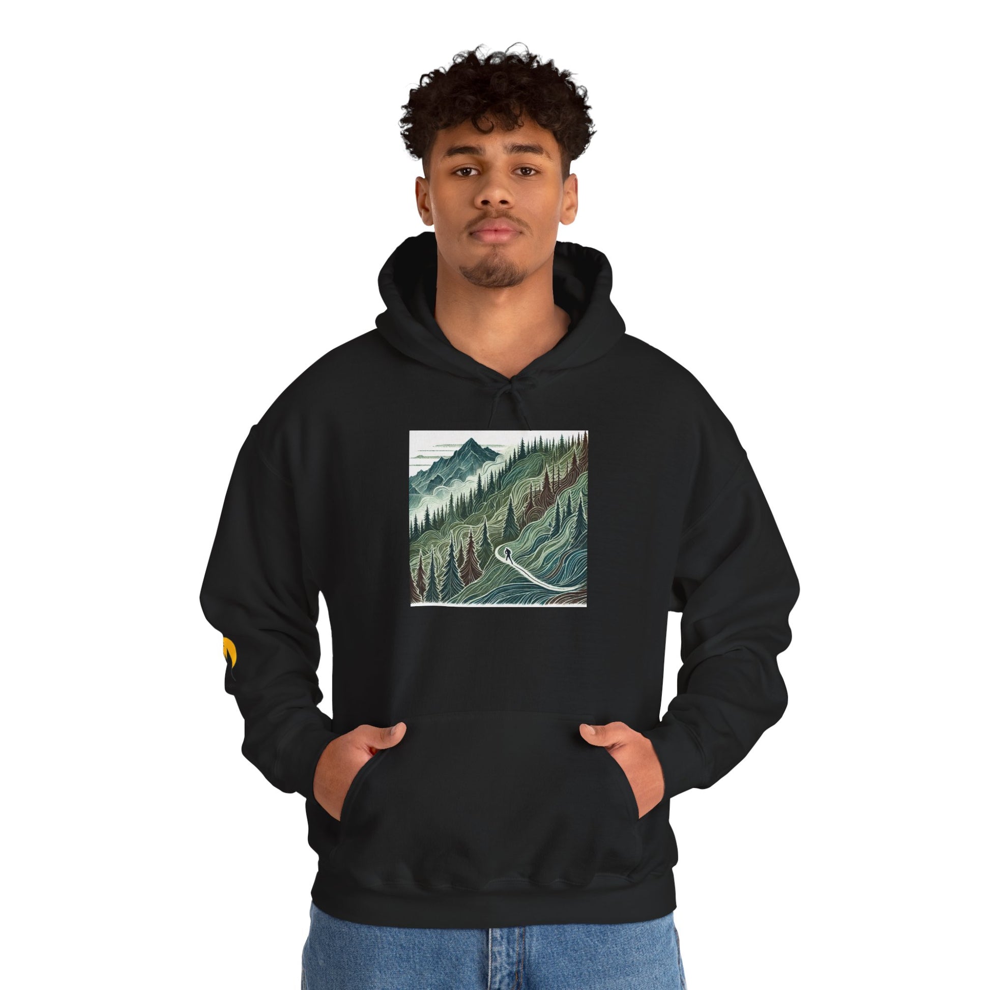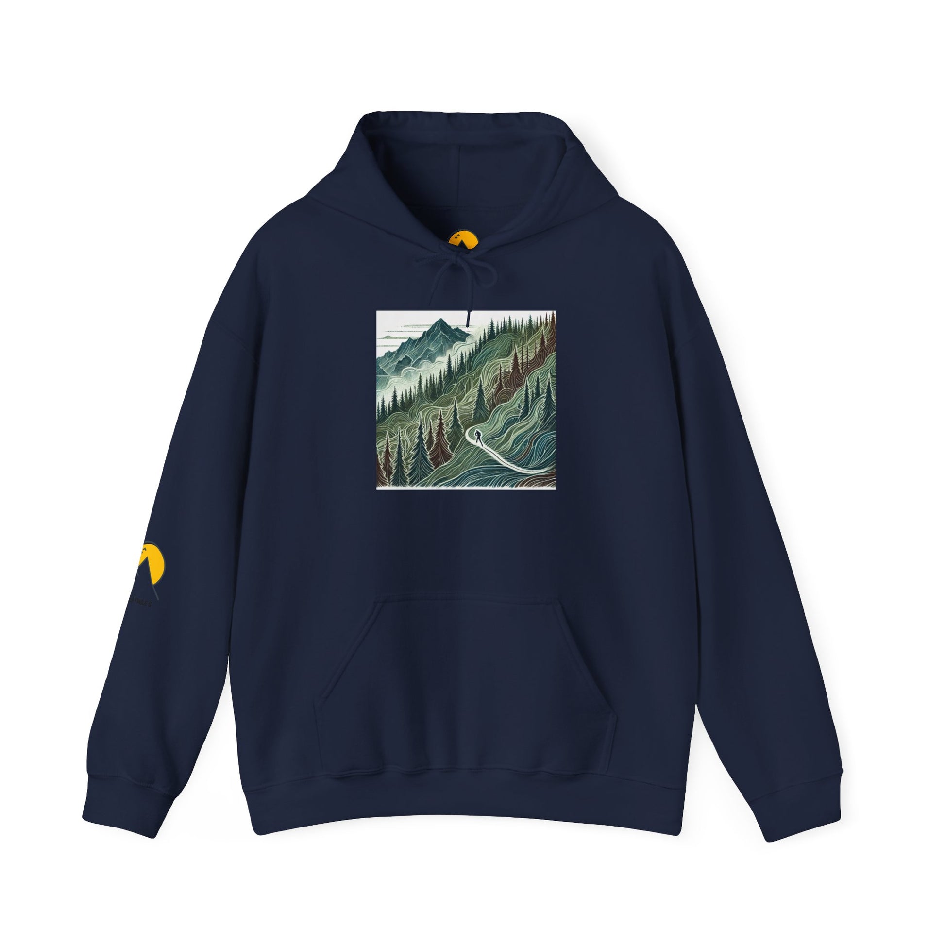 Front and center: misty ridges, stubborn pines, one tiny human making questionable but correct decisions about vert. It’s basically a wearable trailhead—smells like stories and maybe a little like wet dirt if you’re doing it right.
