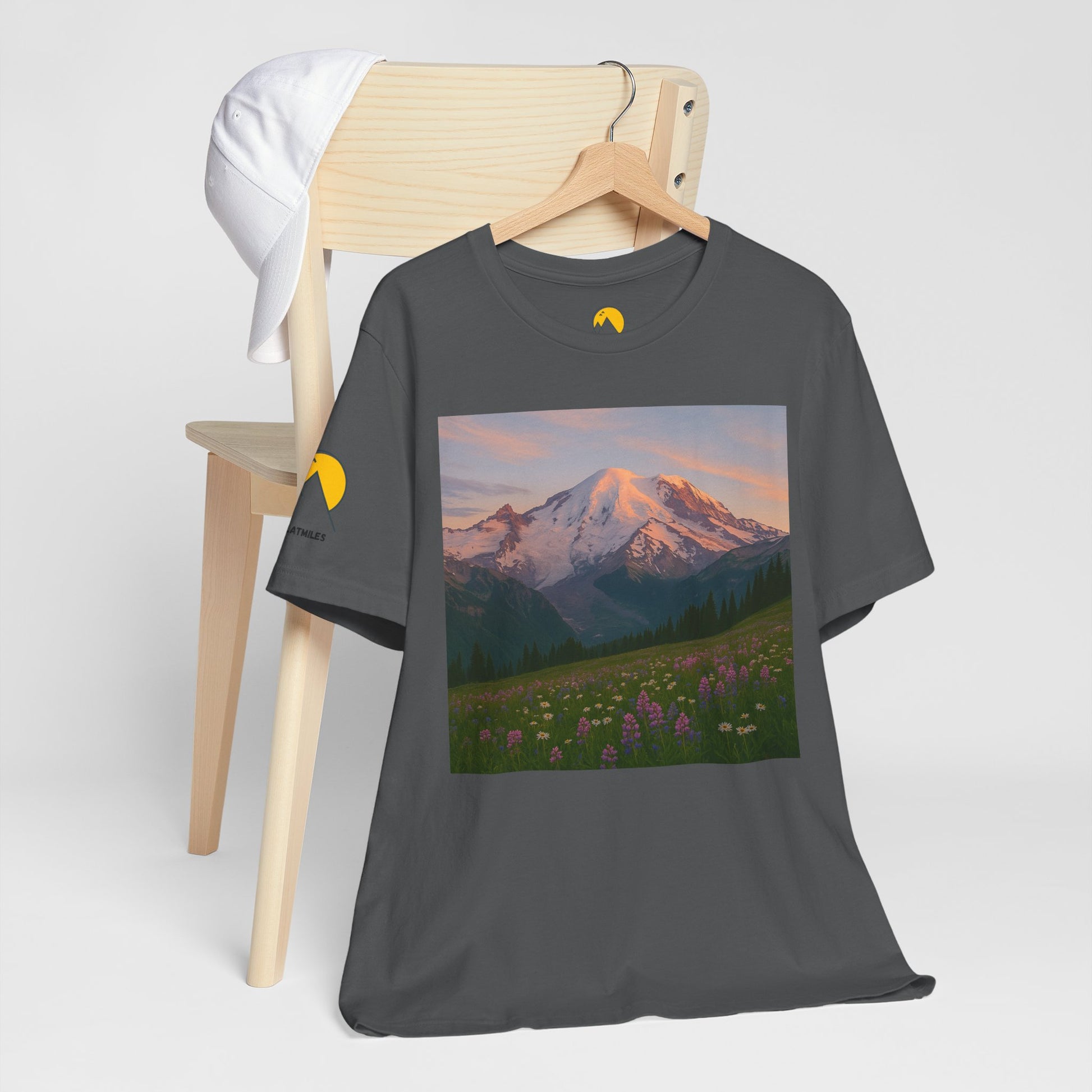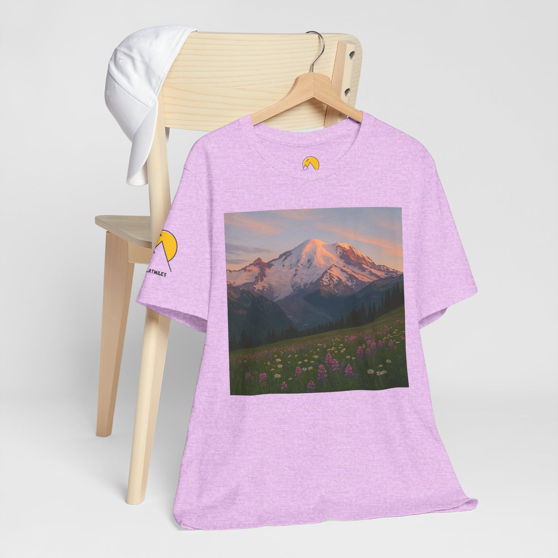 NOFLATMILES Rainier Bloom Tee – Bella+Canvas 3001 (Alpenglow Edition)