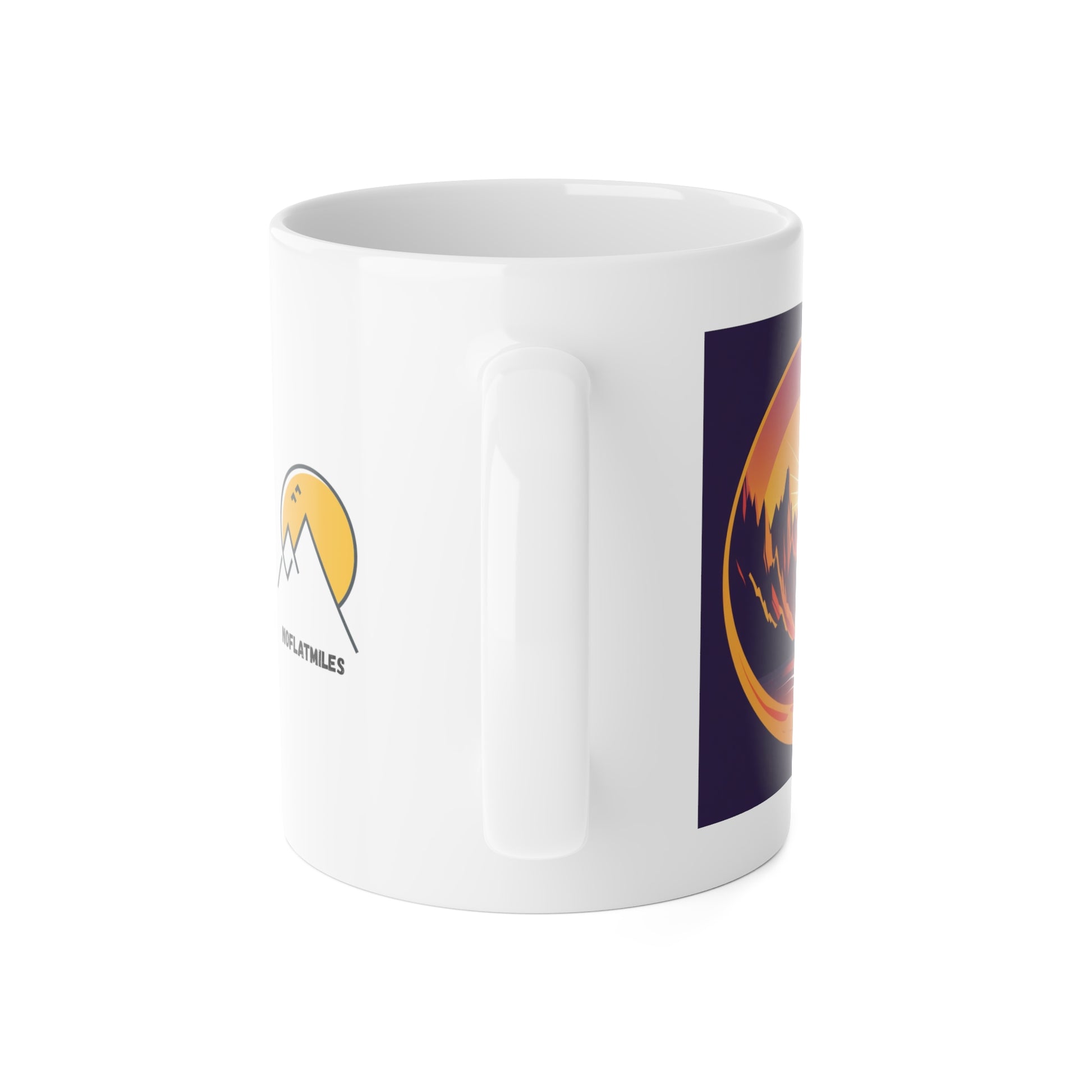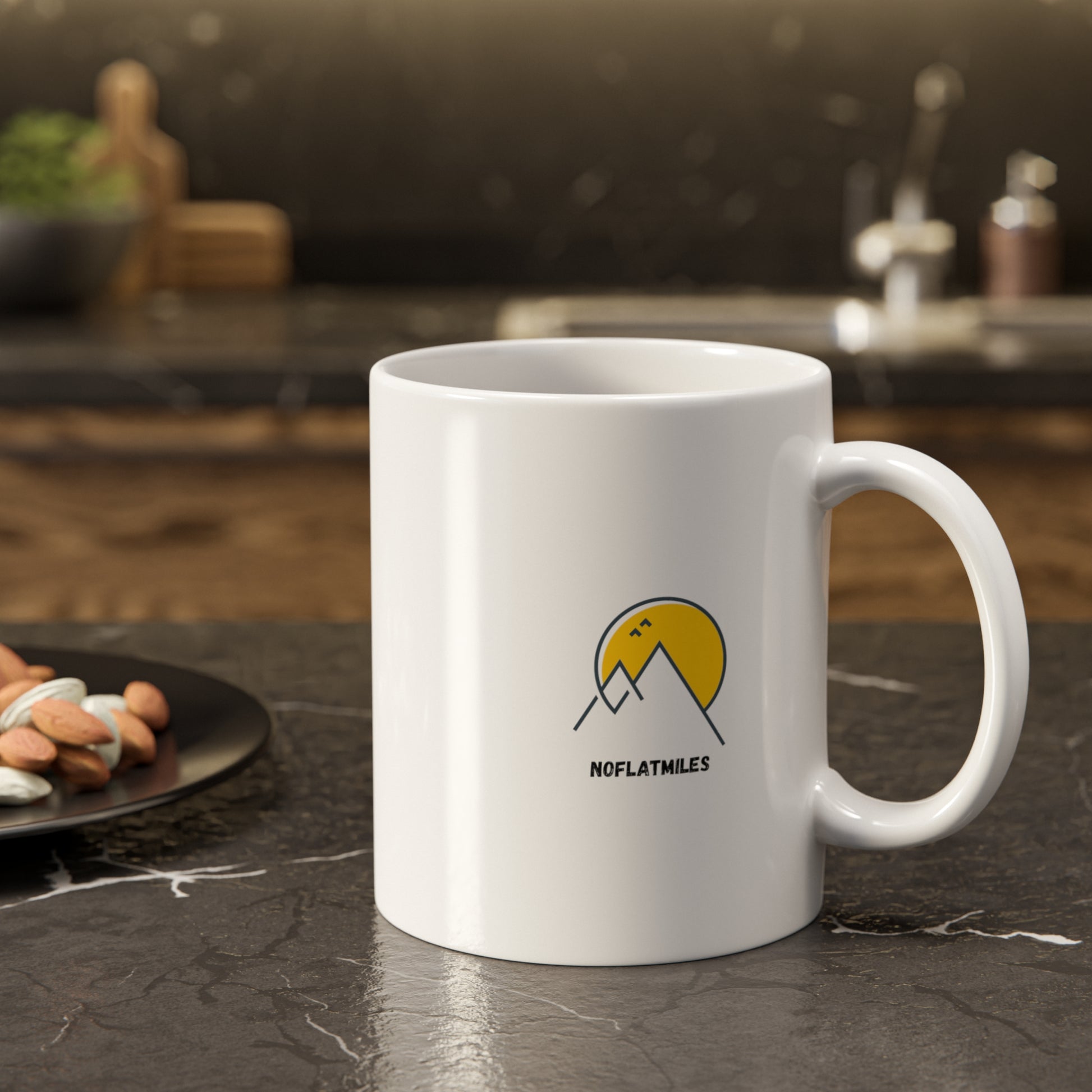 Start your day with a view of the trails! This classic 11‑ounce ceramic mug showcases a panoramic trail photograph wrapped around the exterior with the NOFLATMILES logo integrated into the scene. The durable white ceramic construction and glossy finish make colors pop, while the C‑shaped handle ensures a comfortable grip. It’s BPA‑free, microwave‑safe and easy to clean (hand wash recommended for lasting brilliance). Perfect for coffee, tea or hot cocoa after a long run. Printed in the USA.